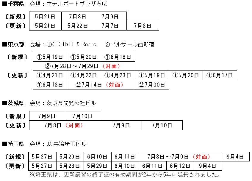 ※有効期間は、新規講習修了から5年、更新講習修了から2年